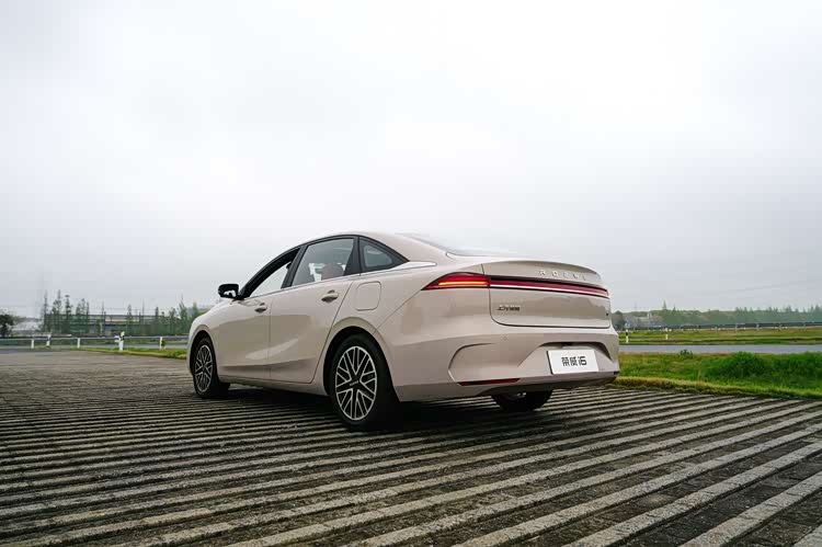 侧面来看,荣威i6的造型相对就没有那么激进了,使用的都是中规中矩的线条,另外,车窗下沿的镀铬装饰条确实增添了一些精致感,让整个侧面看着更为丰富。车身尺寸方面,荣威i6的长宽高分别为4767/1828/1498mm,轴距为2755mm,荣威i6的这个轴距表现比同级车型都要长一些,这也为它带来了更加充裕的后排空间。来到车尾,可以看到荣威i6使用了贯穿式尾灯,车尾的造型是四平八稳的类型。
