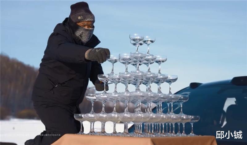 消除恐惧最好的办法就是直面恐惧,面对质疑最好的办法就是用实际行动和成果来打破质疑。此前蔚来旗舰轿车ET9上市的时候,官方在车头叠上5层香槟塔,过减速带时香槟塔稳稳不倒,以此证明其优异的底盘素质。但当时有人质疑,是不是量身定制了减速带的间距?是不是用胶水把杯子粘住了?