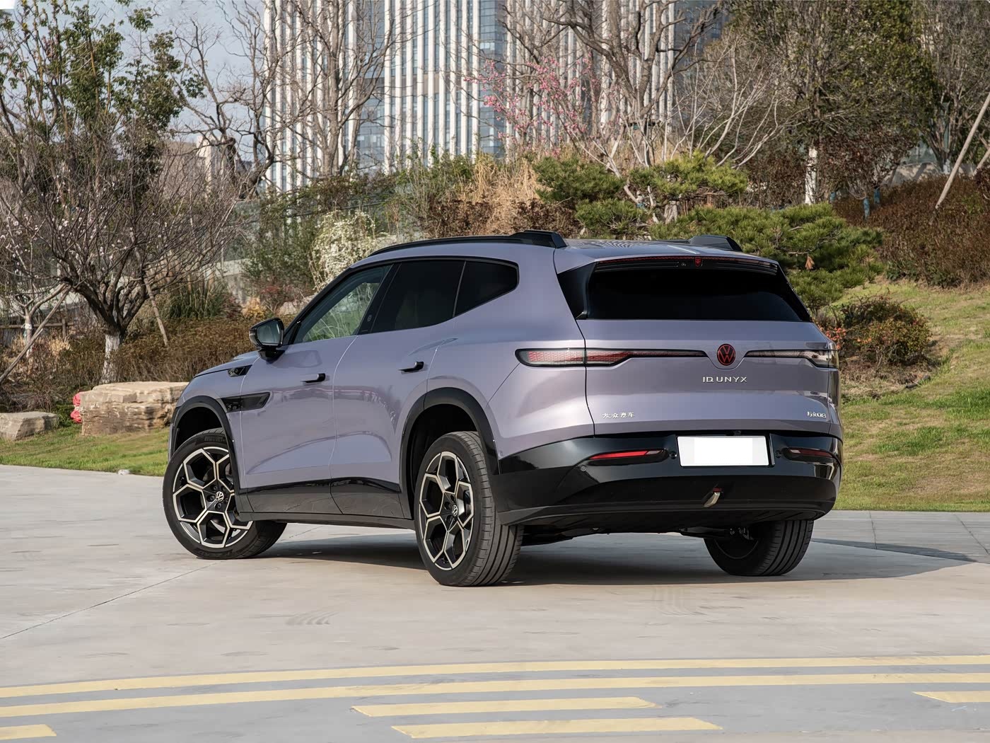 再来看车尾部分,车尾设计延续了整车的极简风格,却在细节处暗藏巧思。贯穿式尾灯与车头灯光系统形成呼应,同样支持动态灯语交互,刹车时高位刹车灯的狼堡狼头标志亮起,成为独特的身份标识,既致敬了大众的发源地沃尔夫斯堡,又增添了专属仪式感。车顶小尾翼与保险杠上的金色饰条,将车头的中轴设计语言延伸至车尾,实现了整车设计的完整性。后保险杠下方的扩散器造型,进一步强化了运动属性,搭配简洁的线条,让车尾在稳重中不失动感。