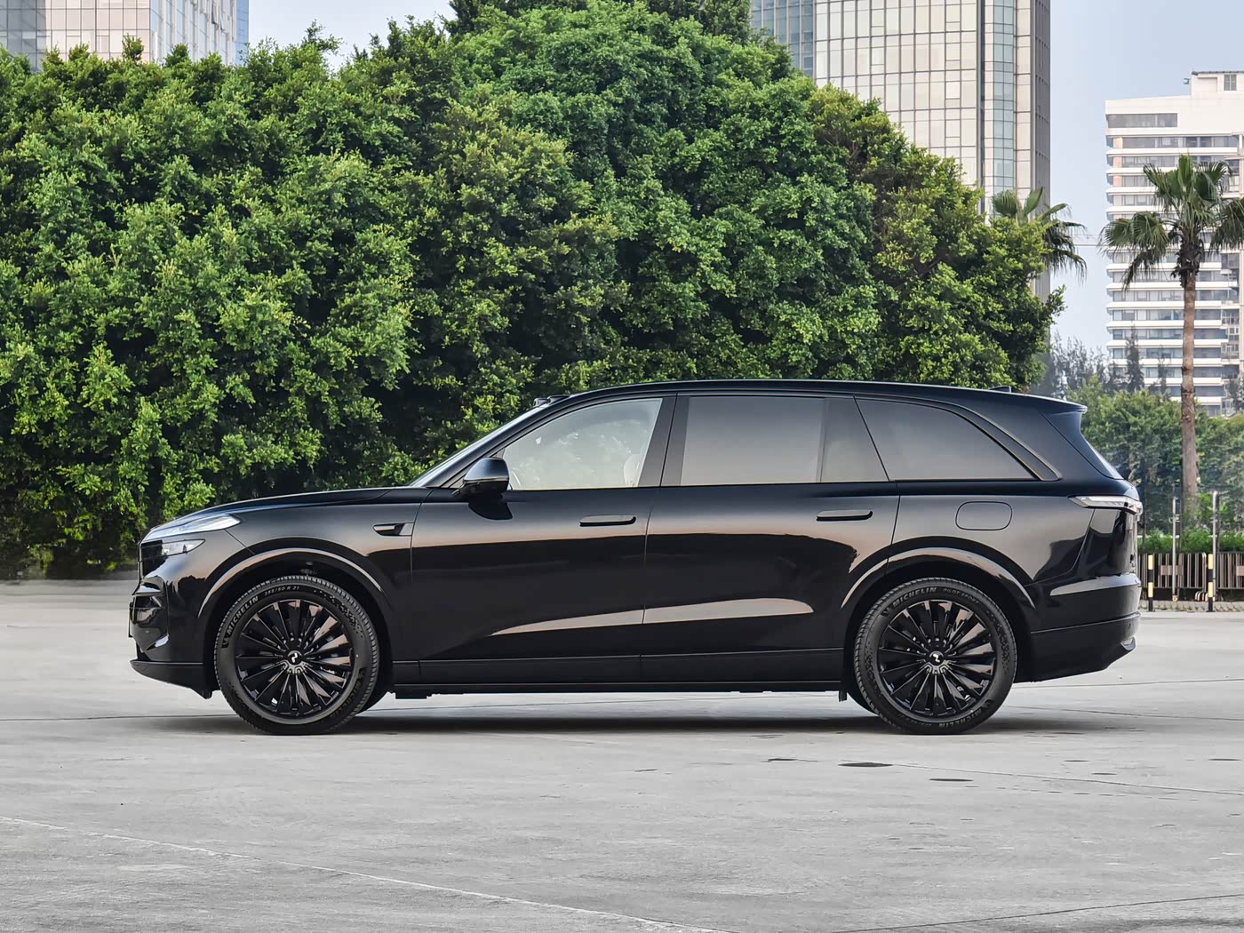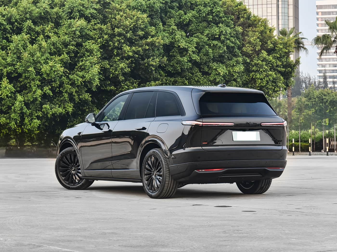 再来看车身侧面部分,乐道L90的修长感扑面而来。5145mm的车长、1998mm的车宽搭配3110mm的超长轴距,营造出大气稳重的体量感。悬浮式车顶设计是侧面的一大亮点,黑色车窗饰条与B/C柱融为一体,配合车顶镀铬线条,既增添了豪华感,又巧妙弱化了大型SUV的笨重感。细节之处同样考究:隐藏式门把手降低了风阻,也让车身线条更流畅;侧裙下方的镀铬饰条贯穿前后轮圈,与车顶饰条形成呼应,提升了整体精致感。