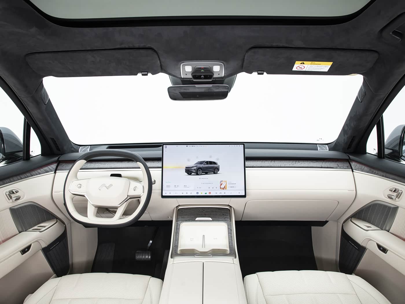 进入车内,内饰主打环抱式云感豪华座舱 + 全场景家用舒适,搭载12.3 英寸全液晶仪表 + 17.2 英寸 3K 悬浮中控屏 + 35 英寸 AR-HUD三屏联动,搭载乐道智驾系统 + 高通 8295P 芯片,支持 5G、六音区语音、连续对话、全域 OTA、手机互联,操作流畅、交互便捷。电子怀挡 + 触控面板,解放中央通道,下方镂空储物。座椅采用人体工程学云感设计,全系标配全车座椅加热、一二排通风 / 按摩,六座版二排独立零重力座椅(535mm 宽),空间方面,3110mm 超长轴距 + 纯平地板,185cm 乘客前排头部一拳、后排腿部两拳半,六 / 七座布局灵活,满载不拥挤。
