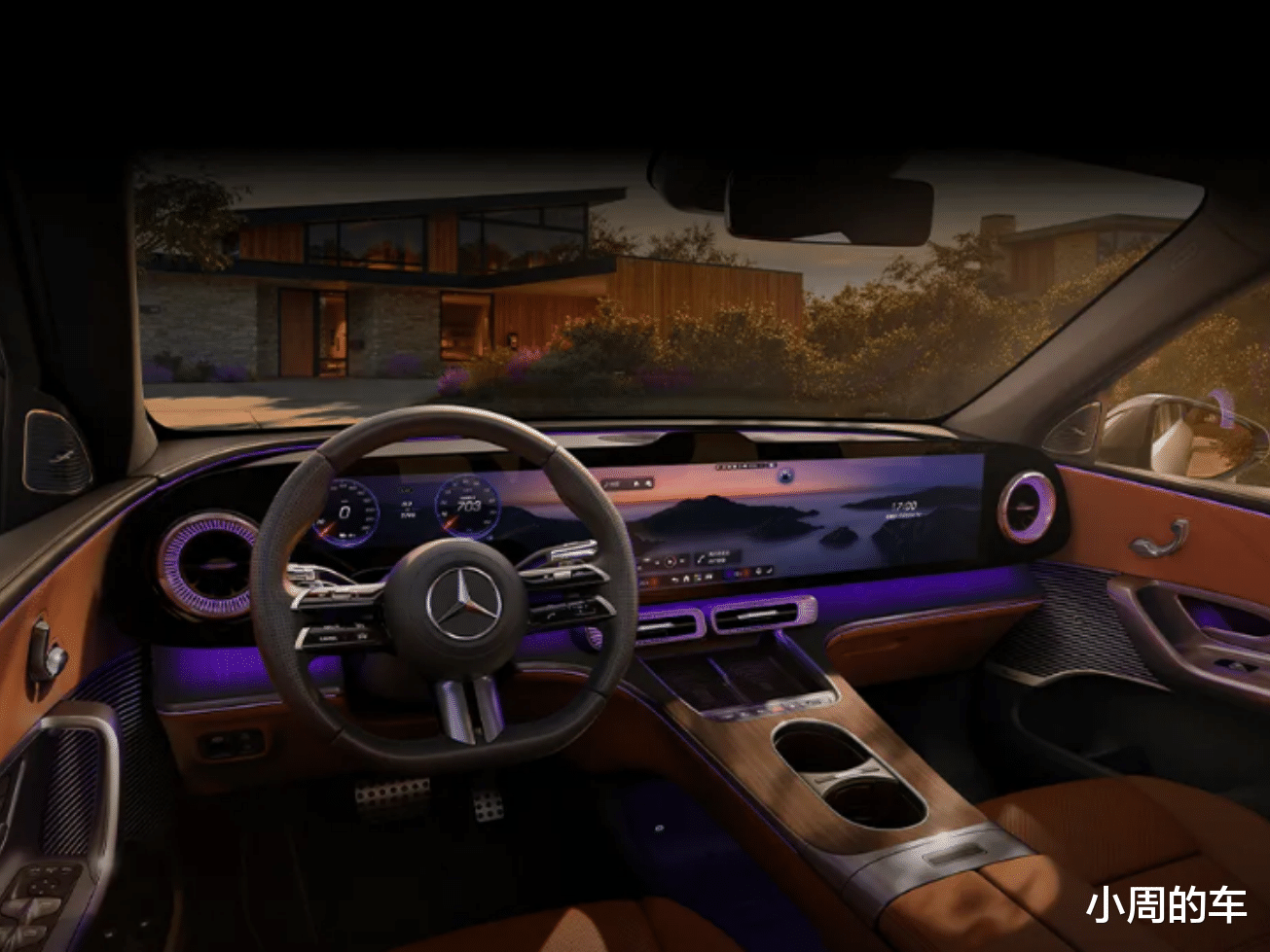来到车内,新车比较醒目的地方在于它配备了一块接近一米长(99.3厘米)的联体式大屏,其尺寸达到了39.1英寸,它由14.4英寸中控以及12.3英寸副驾驶娱乐屏组成,车机内置了高通骁龙8295芯片,并搭载有全新的MB.OS车载操作系统,功能端可以实现多屏联动、语音交互以及OTA升级。同时,新车还配备HUD抬头显示系统,可将车速、导航、驾驶辅助等行车信息投射至前挡风玻璃。