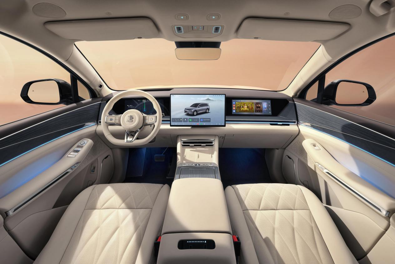 不仅如此,大唐更给足旗舰仪式感。从靠近车身即开始,蓝牙无感解锁、手势开门、电动踏板迎宾、光毯点亮、座椅后移恭迎、四门电吸静音闭合,每一次上下车,都是尊崇礼遇。