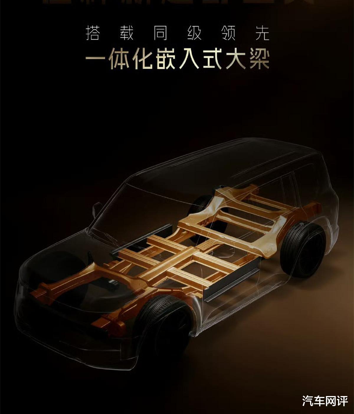 根据官方公布的数据,它的整车扭转刚度高达38000N·m/°,差不多是传统硬派越野标杆车型的4倍;与此同时,整车重量比传统大梁车型轻了15%-20%,重心也明显降低,既保留了硬派越野必需的车身刚性和可靠性,又改善了传统硬派SUV操控笨重、油耗偏高的短板,刚好在越野性能和城市行驶体验之间,找到了一个不错的平衡点。