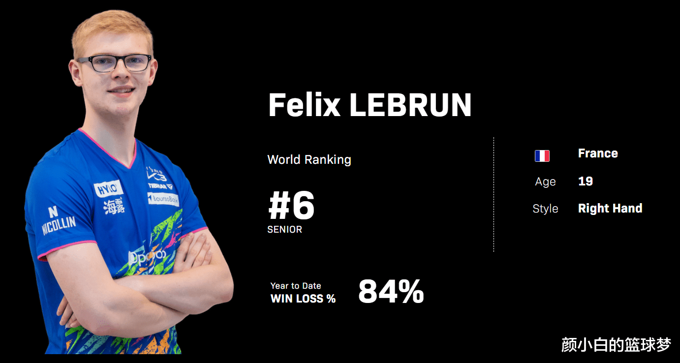 法乒一哥就是小勒布伦,今年19岁的他世界排名已经是第四,他是