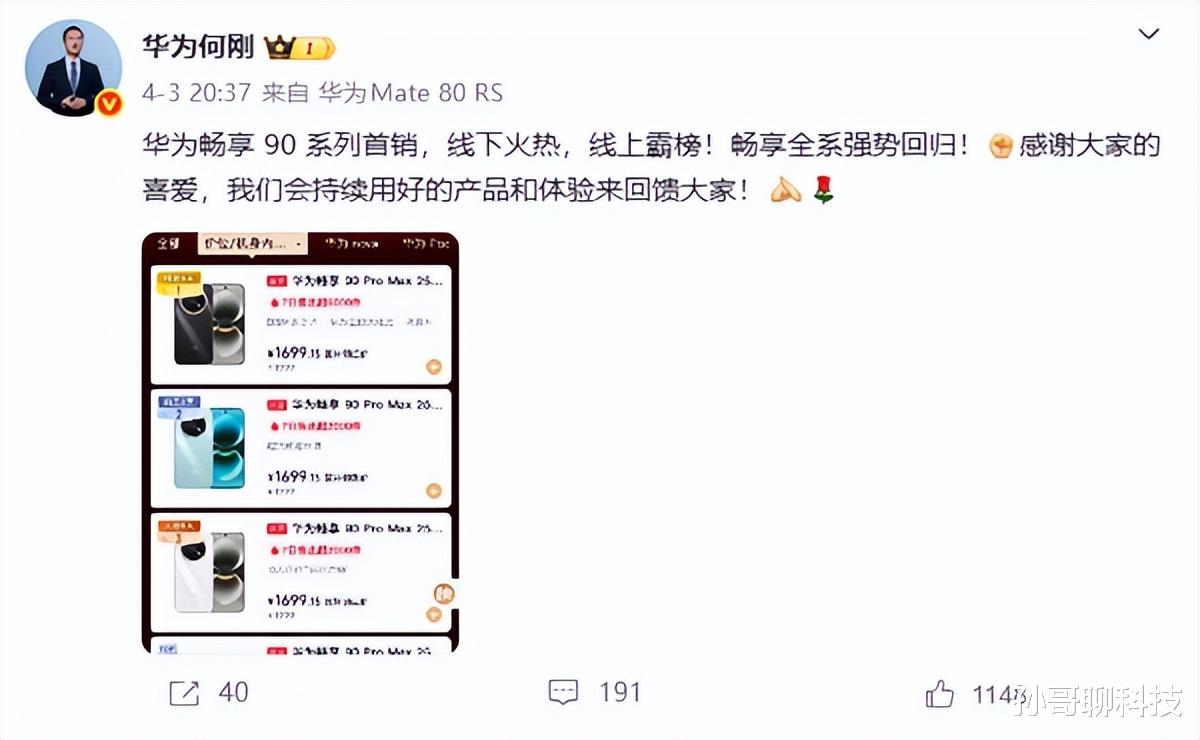 一方面是国内友商大幅涨价,一方面是华为千元机王者归来,国内市场份额变化完全在预料之中。华为终端BG首席执行官何刚也表示,华为畅享90系列线下火热,线上霸榜,全系强势回归,包揽了某主流电商平台销量前四名,让不少网友惊呼华为真的回来了。