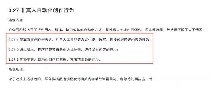 值得注意的是,微信公众号近日新增“非真人自动化创作行为”规则,明确规定:公众号和服务号不得利用AI、脚本、接口或其他自动化方式,替代真人完成内容创作、发布等流程。