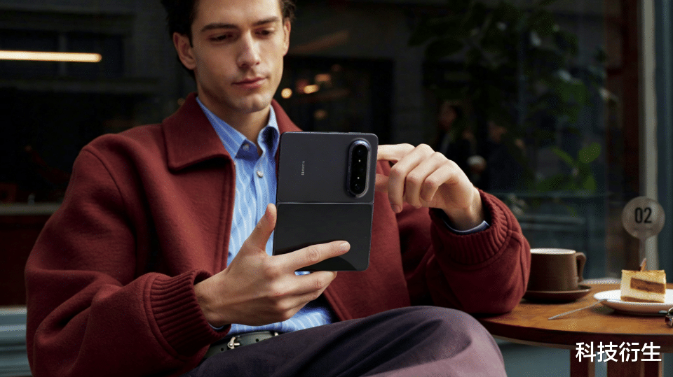 后置摄像头组,采用上方长方形凸起设计,并且与后盖进行过渡,内设三大圆圈,融入多颗摄像头+闪光灯。新机整体设计独特,尤其是机身比例,所以官方称为大阔折。
