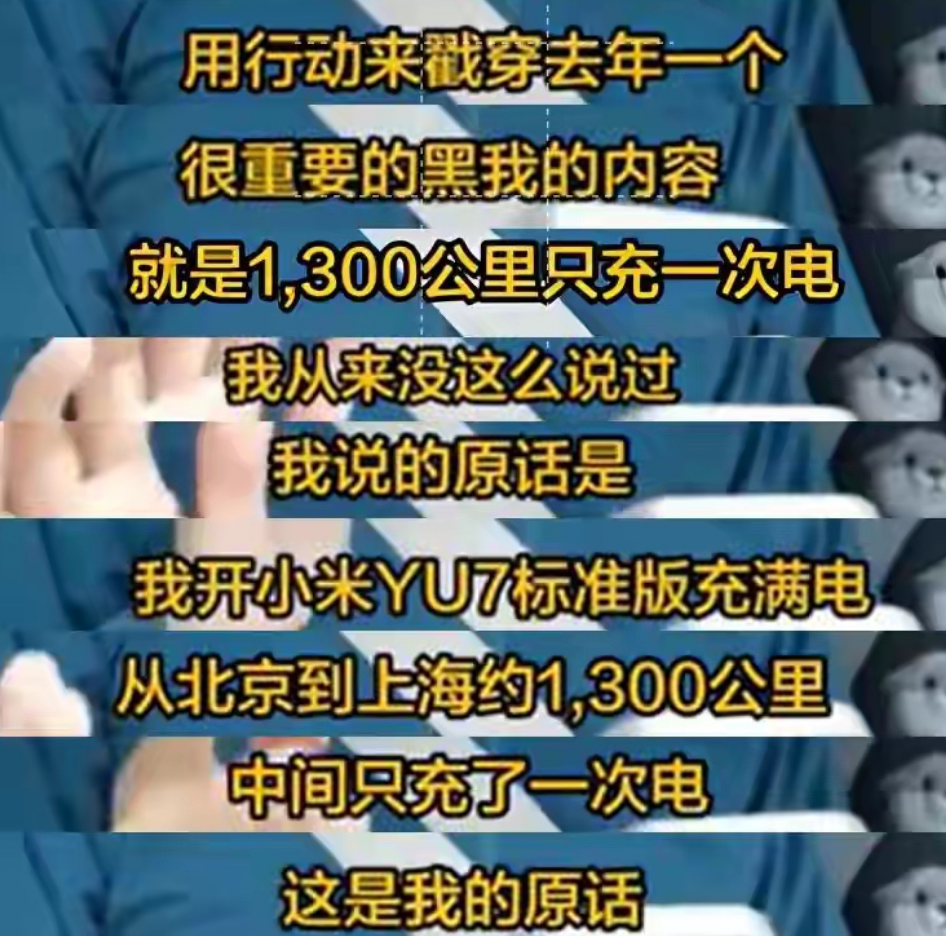 事情的起因可以追溯至2025年初。在一次公开场合中,雷军分享了自己驾驶SU7标准版从北京到上海的高速体验——全程约1300公里,满电出发,中途只充了一次电。