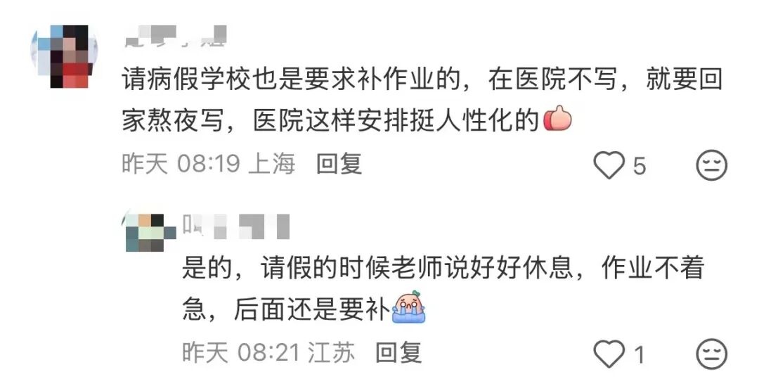 家长:作业还是要做的,如果身体允许的话是会让他做,如果身体实在不允许的话,不会强制要求他做。