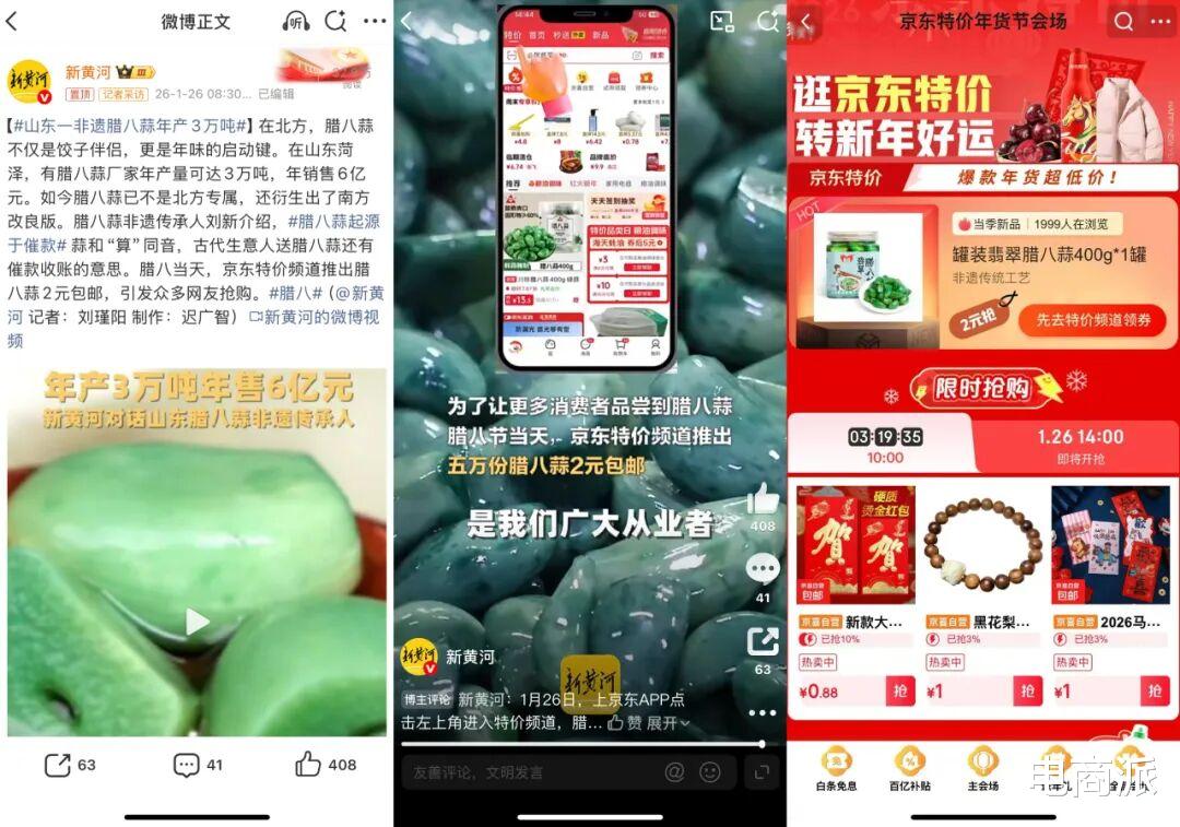 于是韩先生主动找到京东特价频道。双方达成合作意愿后,京东采销团队没有简单地把腊八蒜当“节日食品”卖,而是挖掘出了它背后的品牌价值——金乡产地、非遗工艺、传统节日,这三样东西叠在一起,本身就是绝佳的故事素材。
