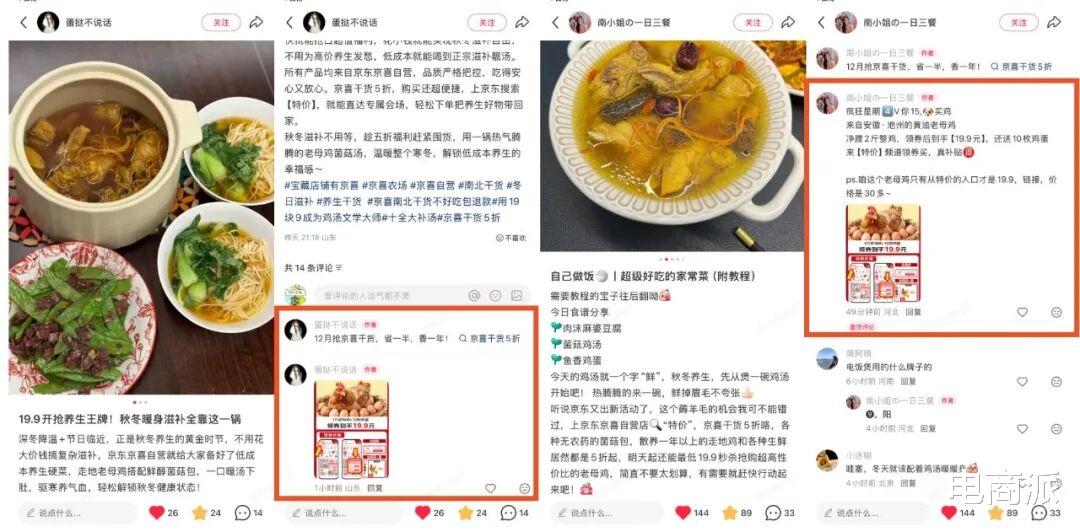 第二,不止是卖货,也是讲品牌故事。采销亲自上阵直播,现场煮鸡汤;小红书提前种草,联动媒体溯源产业带…京东特价频道做的,是替商家们构建一个立体的内容矩阵,让消费者看见鸡是怎么养的、蒜是怎么腌的,让产业带商家不再只是冷冰冰的供货商,而是一个有温度、能对话的品牌。