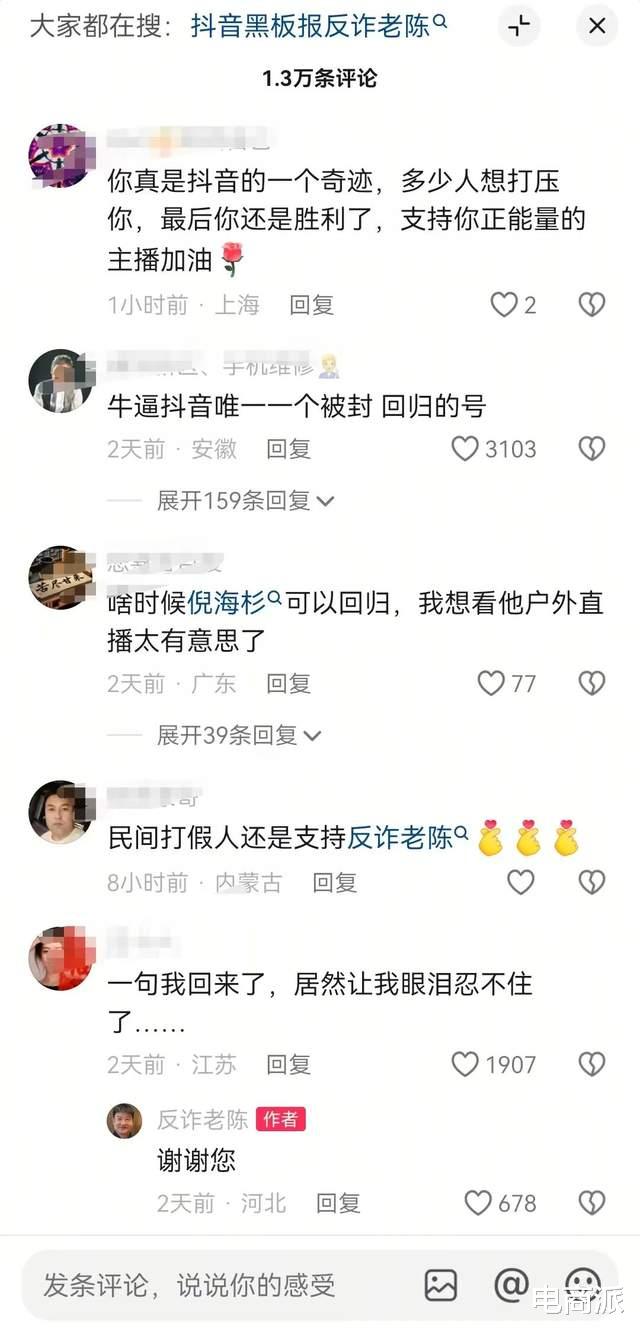 其中,反诈老陈对抖音平台表示了发自内心的感谢,称抖音又给了他一个机会,同时还要谢谢所有人。