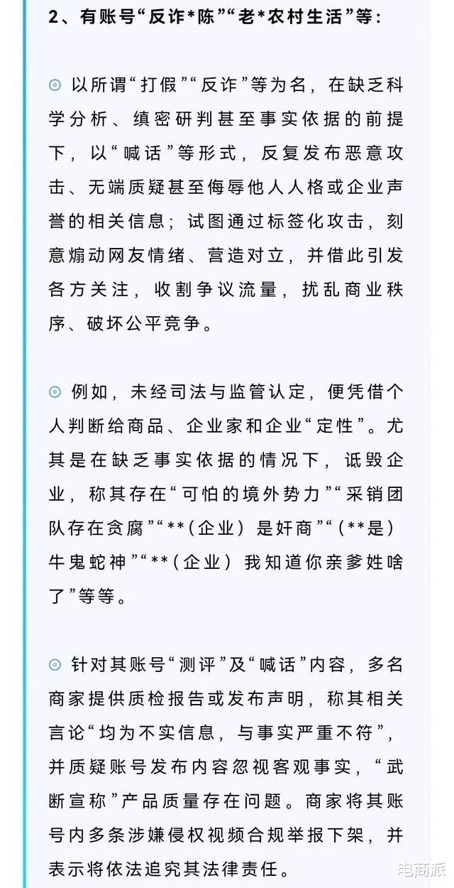 封禁理由解释得很明确:以所谓 “打假”“反诈” 等为名,在缺乏科学分析、缜密研判甚至事实依据的前提下,以 “喊话” 等形式,反复发布恶意攻击、无端质疑甚至侮辱他人人格或企业声誉的相关信息;试图通过标签化攻击,刻意煽动网友情绪、营造对立,并借此引发各方关注,收割争议流量,扰乱商业秩序、破坏公平竞争。