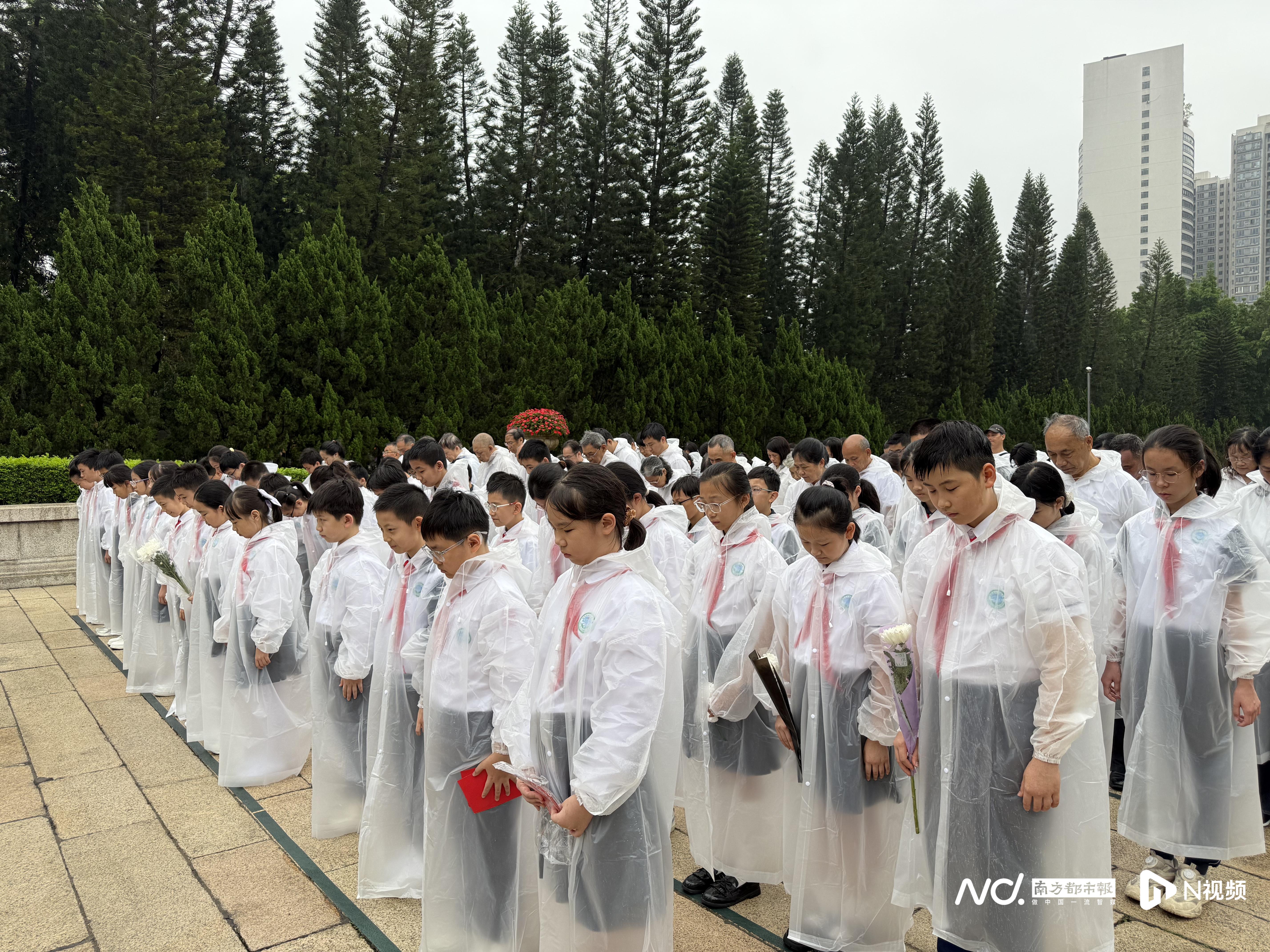 全体人员向抗日阵亡将士纪念碑默哀。南都N视频记者吴笋林摄