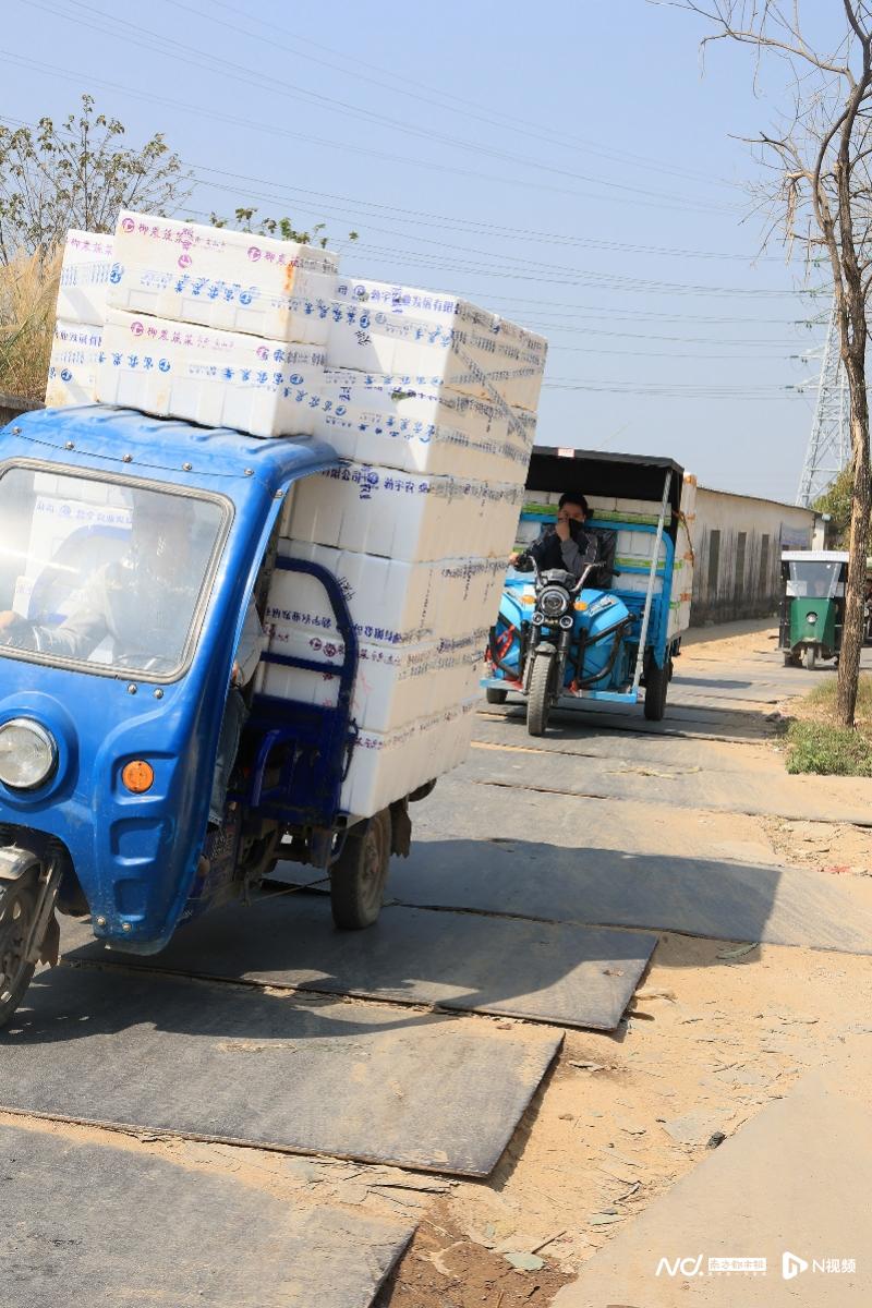 林师傅表示,路面颠簸导致蔬菜易被颠坏,“一箱菜掉下来就损失20块,同行里还有人一次损失几百块的”。而王师傅则透露,周边从事蔬菜运输的人员有几百人,大家都对破损路面颇有意见,“这条路车流量很大,全是运蔬菜的车,路不好走,不仅耽误时间,还可能影响蔬菜新鲜度”。