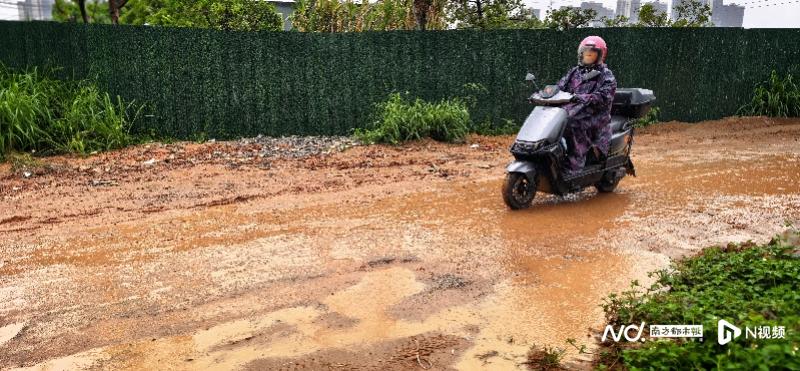 南都记者现场走访发现,网友反映的叶屋基村河边路段的确坎坷难行,给市民出行造成不便,并伴随着噪音、扬尘污染和安全隐患。该路段有两处因施工受影响较为严重,其中有一处临近叶屋基一桥,路面坑洼不平,有黄沙和污泥裸露,路过电动车和小微型货车不仅颠簸,还容易打滑,雨天则更是泥泞难行。