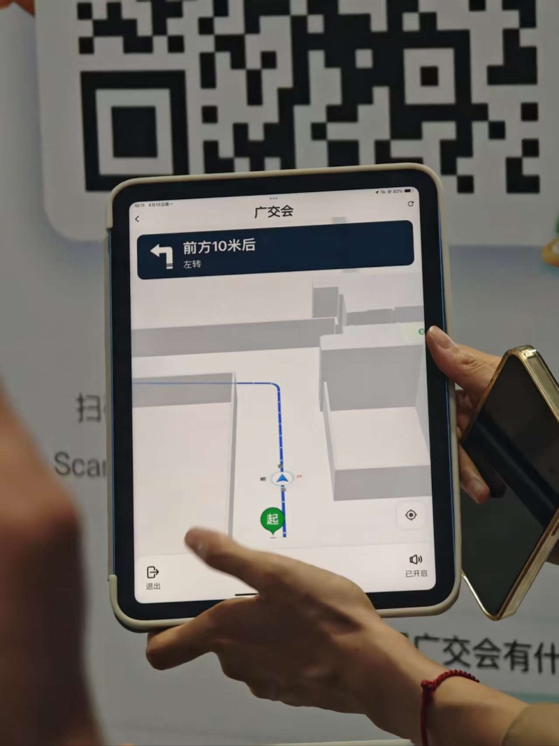 而在智慧导航方面,广交会客户服务中心综合管理部工作人员成佳艺表示,上届开创先河的展位级导航服务在本届实现了覆盖面积的大幅提升,不仅将覆盖面从2个展厅扩展至25个展厅及公共区域,覆盖超65%展览面积,参展人员可通过广交会APP,搜索展商即可获得最优步行路线与AR实景导航,全馆约1000个公共服务点可实现一键导航。