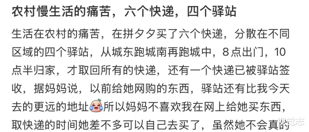 在不少县城和农村,本来快递收寄耗时就长,取快递还得去驿站、去十几公里外的镇上,无论是收退货都很麻烦。
