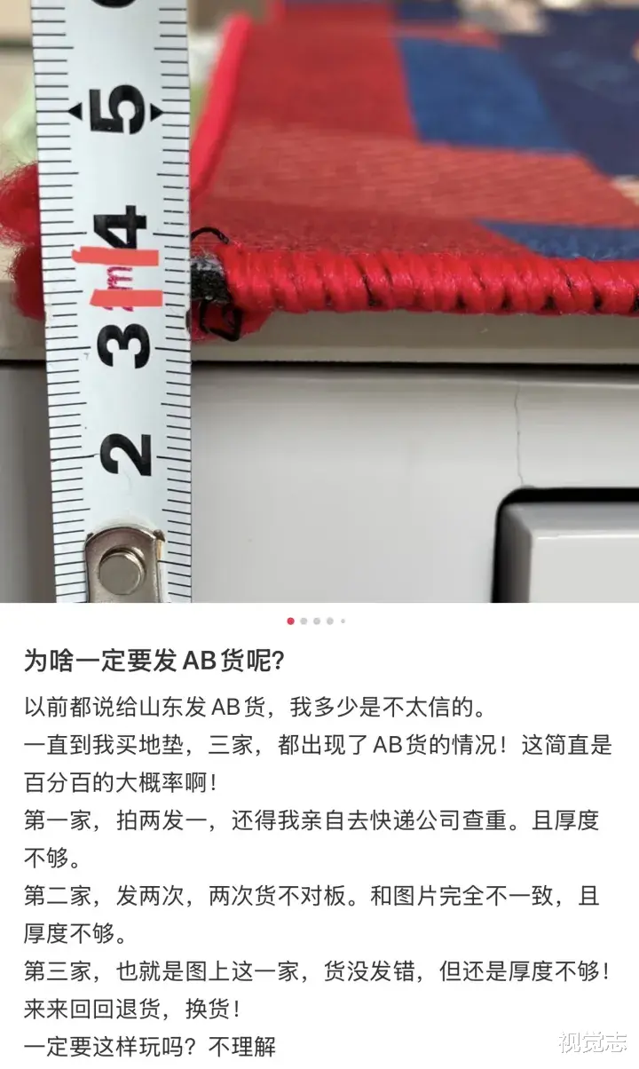 可反反复复买了三家,所买的地垫就是厚度不够、货不对版,来来回回浪费了不少时间和心力。