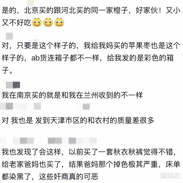 而这种AB货的情况,也并不只仅限于北京和河北。发达城市和三四线城市、市区和农村……按地址分级发货、区别对待,商家们心照不宣。