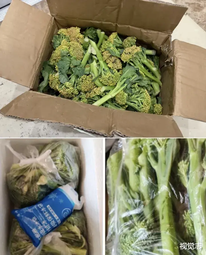 别的网友收到的都是泡沫箱,自己收到的却是一个压扁的箱子,而且里面的西蓝花全都变黄了,不新鲜了。