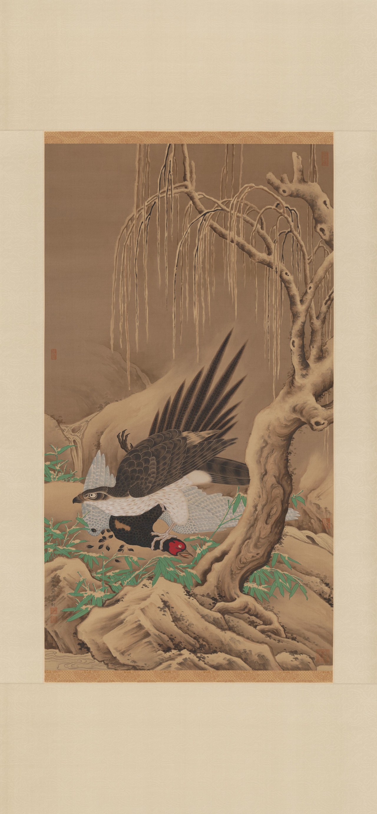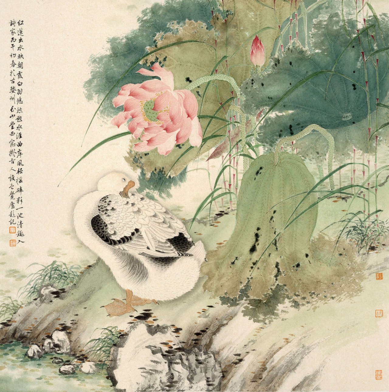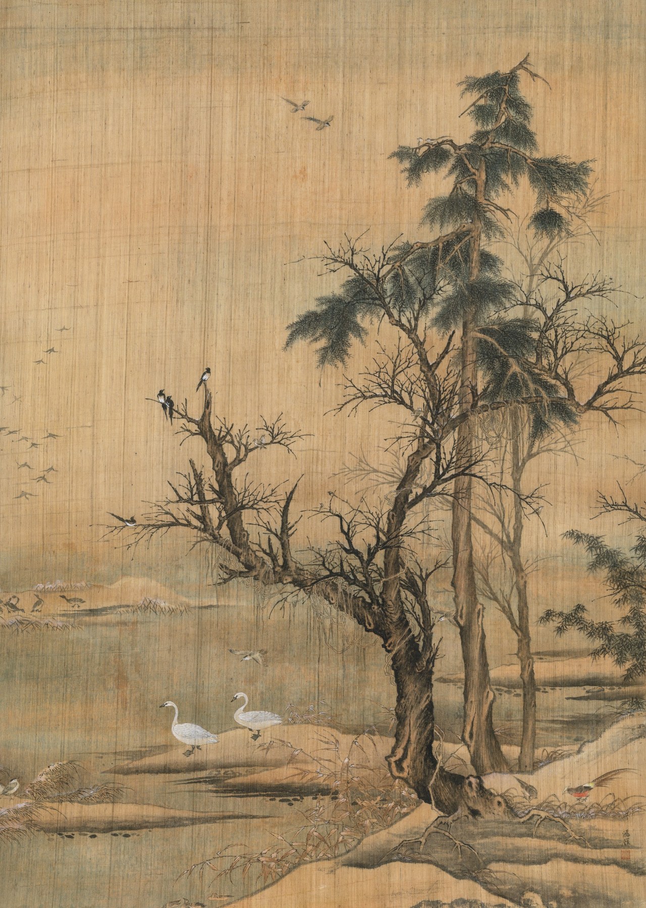 朱鸿雁临五代黄筌枯木水禽图绢本85×60cm