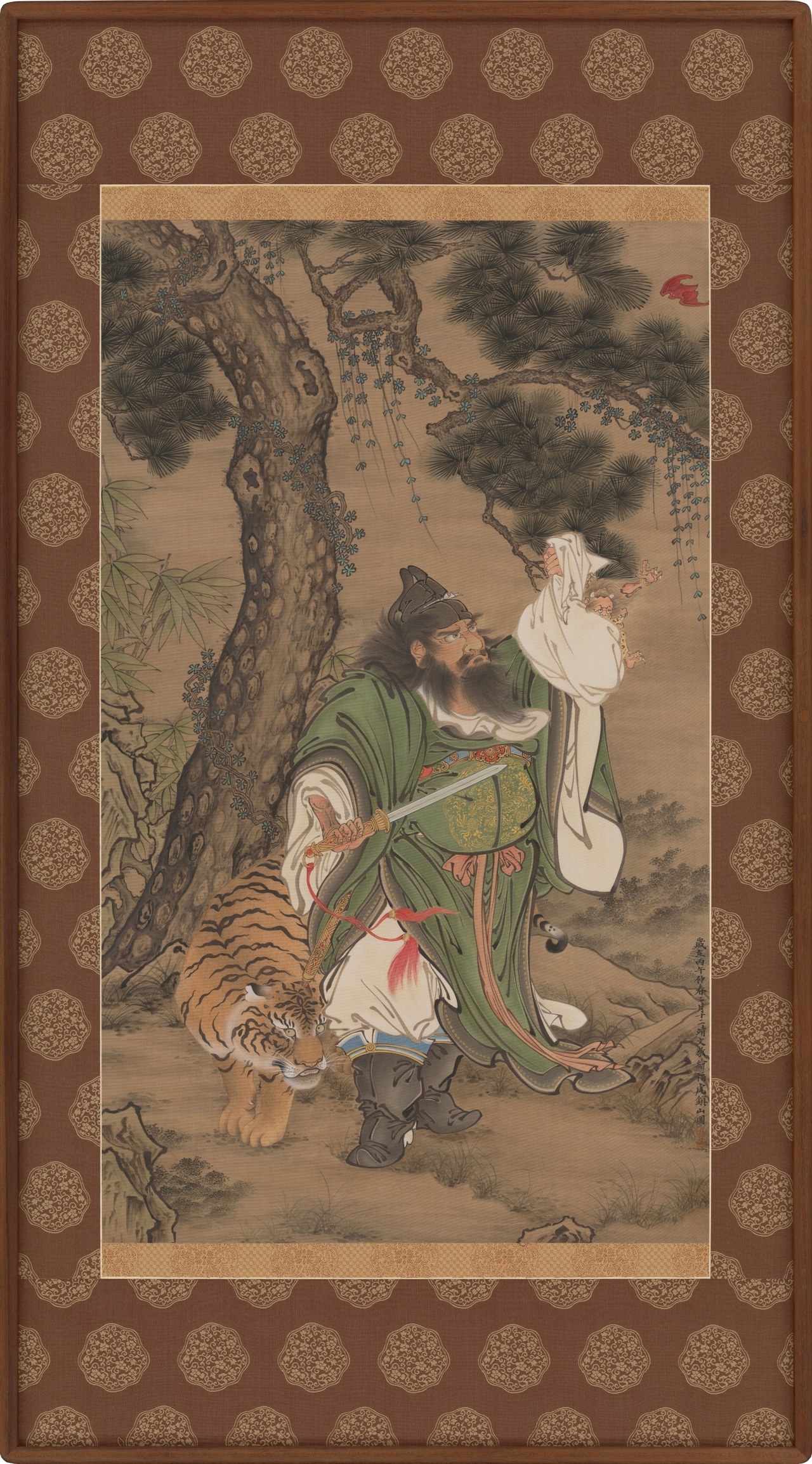 傅靖文钟进士福虎镇山图绢本68×129cm
