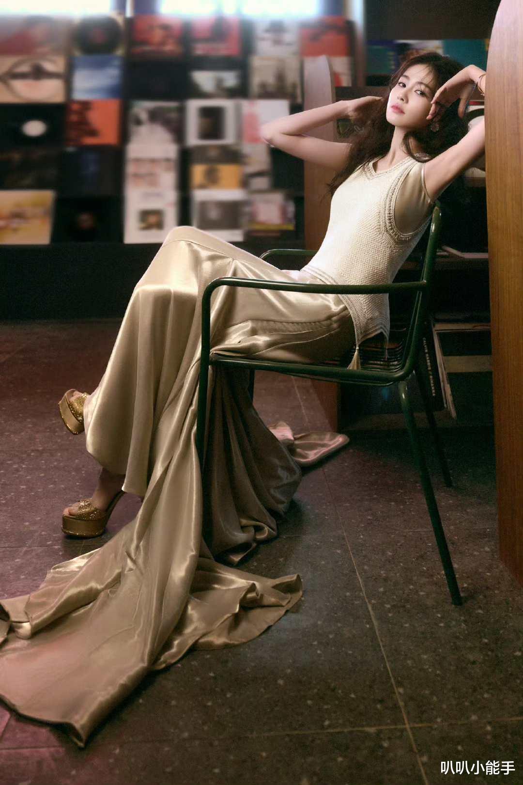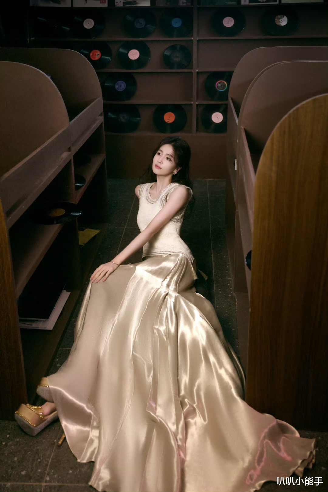 家人们,来看看白鹿这组照片,直接把“优雅”两个字写在了脸上。她穿着一身金色的长裙,坐在绿色的椅子上,背景是摆满唱片的架子,这场景像是把老式唱片店的复古和红毯的华丽给凑到了一块,比咱们平时刷到的“氛围感美女”还要耐看。