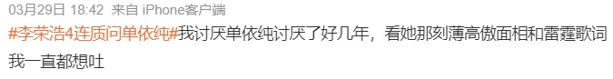 支持单依纯的人,则反过来攻击李荣浩的表达方式。