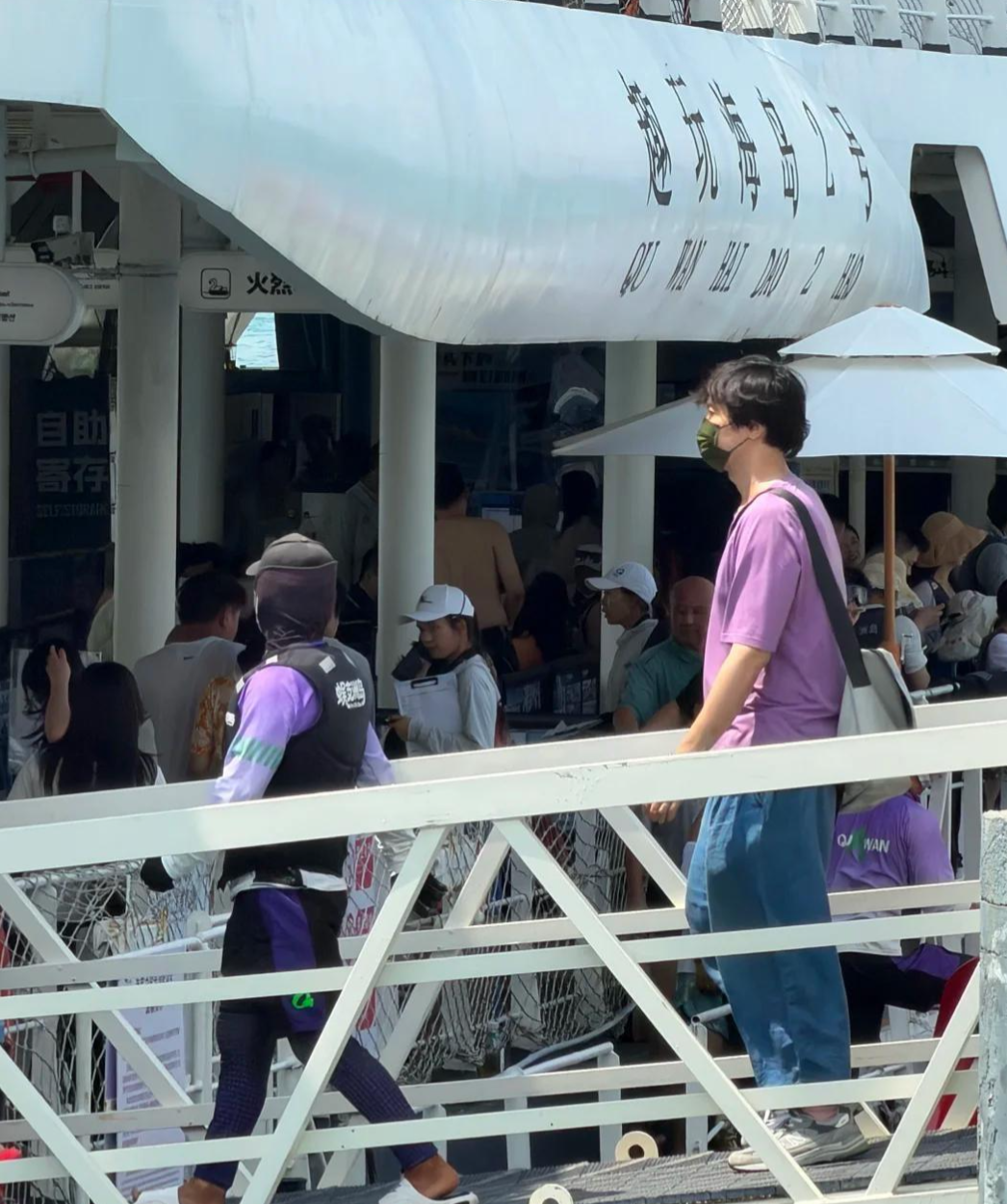 画面里王传君穿着很随意,紫色上衣配绿裤子,头发乱糟糟的,还戴着大口罩,看起来很低调,应该是不想被路人认出来,好安心度假。