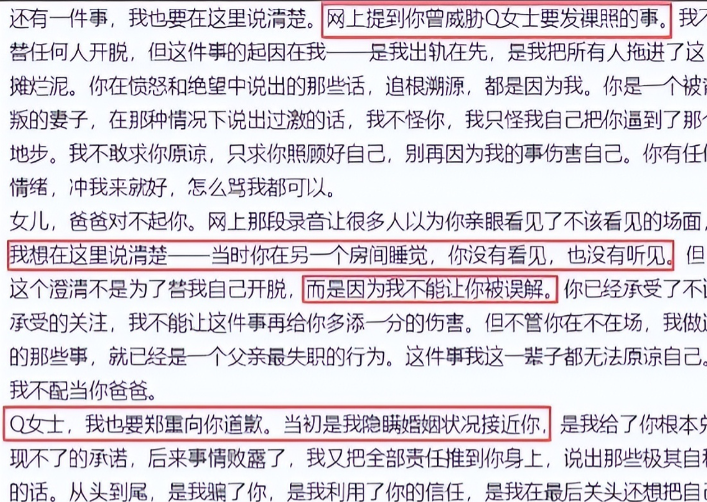 这件事情败露后,他第一时间并没有认错,还反过来怪第三者,甚至想要钱,录音里更是直接说承诺不算数,吃相特别难看。