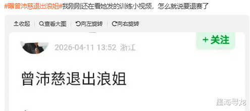 争议发酵后,有人开始喊话让她退赛。可能是迫于舆论压力,网传曾沛慈已退出《浪姐7》,不过该消息仍未得到证实。